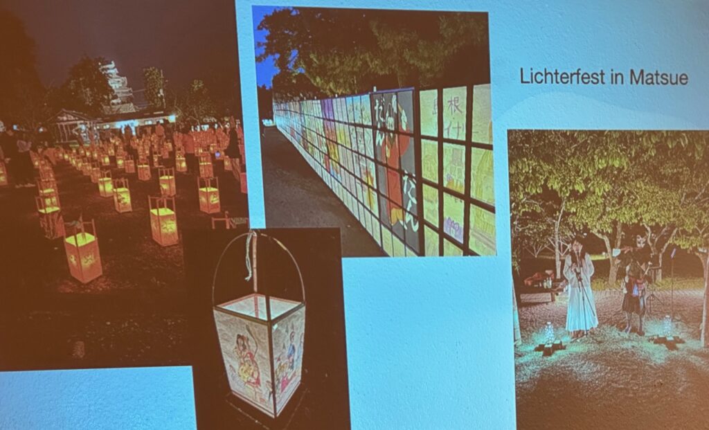 Zum Abschluss gestand Kerstin Gerber, dass noch einige Dinge auf ihrer „Bucket-List“ stehen würden, sodass ein weiterer Japan-Besuch wahrscheinlich erscheint: Fahrt mit dem Shinkansen; Besuch eines Onsens; Besuch einer Karaoke-Bar; Städtetour nach Tokyo, Kyoto und Hiroshima; Erleben der Kirschblüte; Besteigung des Fuji-san. Der lebhafte und mit persönlichen Wahrnehmungen gespickte Vortrag der Referentin wurde durch viele Fragen aus dem Publikum (während und nach dem Vortrag) bereichert.