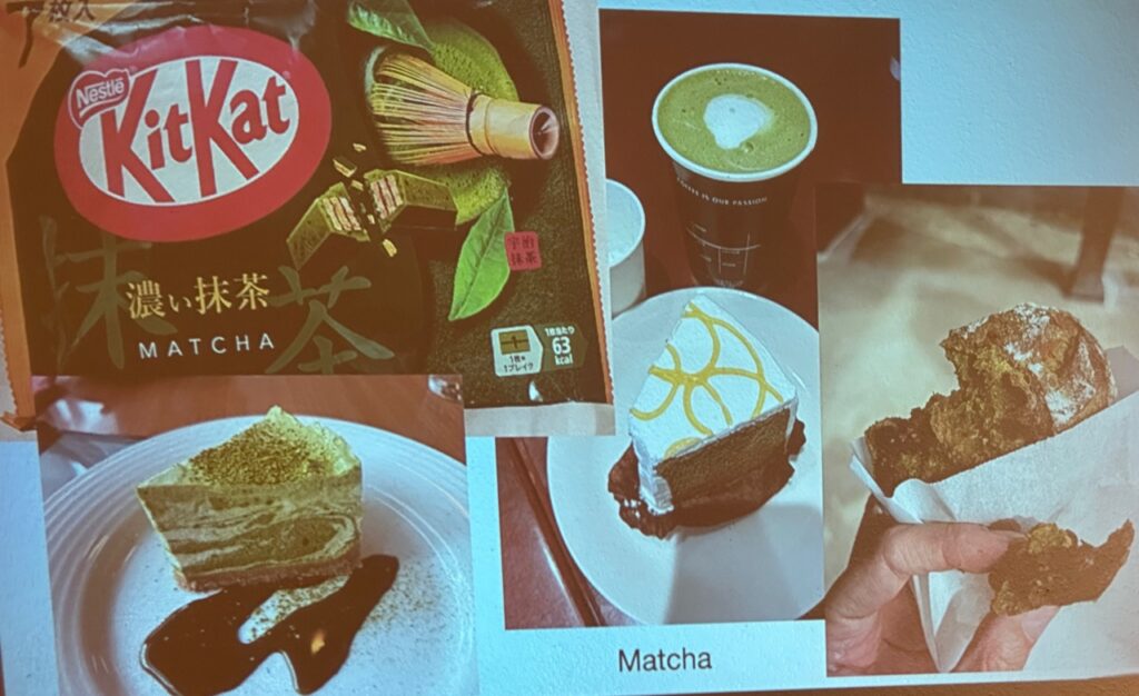 Kerstin Gerber hatte für sich eine Liste „Typisch Japan“ zusammengestellt, zum Beispiel: Matcha; Luxus-WC’s mit gewärmten Sitzdeckeln (auch in Deutschland zu kaufen!); saubere und sichere Straßenunterführungen; echt wirkende Plastikmodelle von Speisen in Restaurants; Getränkeautomaten allerorts; „Winke-Katzen“; Zehenschuhe oder das japanische Frühstück.