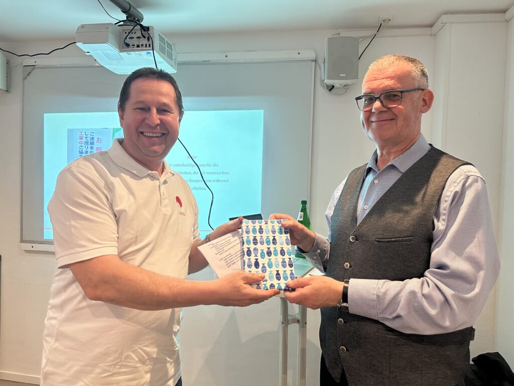Der eindrucksvolle Vortrag von Volker Geball wurde von fast 20 Teilnehmer*innen mit großem Interesse verfolgt und durch viele Fragen ergänzt. Zum Abschluss erhielt Volker Geball nicht nur tosenden Applaus, sondern von unserem Vorsitzenden Dr. Jens Neumann-Rodekirch auch ein kleines Gastgeschenk.