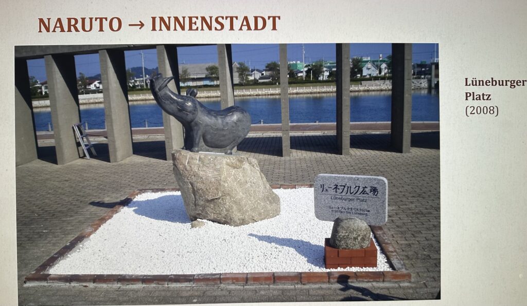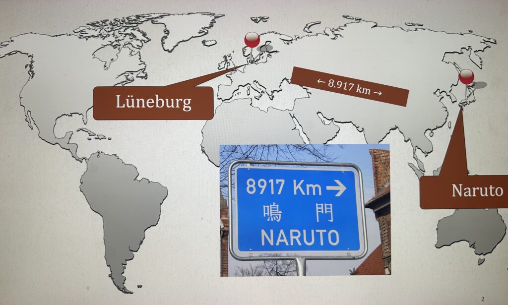 Volker Geball, langjähriger Vorsitzender der DJG Lüneburg, berichtete auf dem Stammtisch der DJG-SH am 14.04.2026 über die Städtepartnerschaft zwischen der japanischen Stadt Naruto (Präfektur Tokushima auf der Insel Shikoku) und Lüneburg. Diese war 1974 die erste offizielle Partnerschaft im Bereich des Japanischen Generalkonsulats Hamburg; sie ist zudem eine der ältesten Deutsch-Japanischen Städtepartnerschaften in Deutschland.