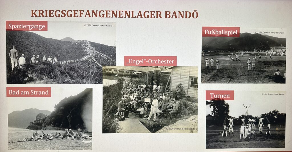 Die Ursprünge liegen jedoch mehr als 100 Jahre zurück und finden sich im japanischen Kriegsgefangenlager Bandō (1917 – 1920). Dort wurden während des 1. Weltkrieges rund 1.000 deutsche Kriegsgefangene nach der Eroberung der deutschen Kolonie Tsingtau durch Japaner und Briten untergebracht. Bandō war ein Ortsteil der Stadt Ōasa, die 1967 zur Stadt Naruto wurde. Volker Geball berichtete über die Situation im Lager, dessen Kommandant Toyohisa MATSUE eine sehr liberale Einstellung hatte: „Der Gefangene ist zwar unser Feind, hat aber eigentlich für sein Vaterland gekämpft und ist gefangen worden.“ Entsprechend gab es viele Freiheiten und eine große Selbständigkeit im Lager: Druckerei, Postamt, Backstube, Musikhalle, Orchester (1918 wurde hier das erste Mal auf asiatischem Boden Beethovens 9. Symphonie gespielt!), Tennis, Fußball, Kegeln und diverse handwerkliche Aktivitäten. Auch entwickelte sich eine reger Kontakt mit der örtlichen Bevölkerung. Zudem kümmerte sich eine Familie TAKAHASHI um die Gefangenen und sorgte dafür, dass ein Gedenkstein für die gefallenen Soldaten aufgestellt wurde.